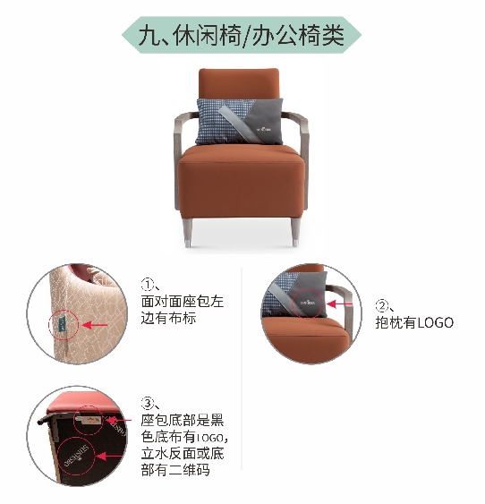(1)产品扶手处有品牌布标;
